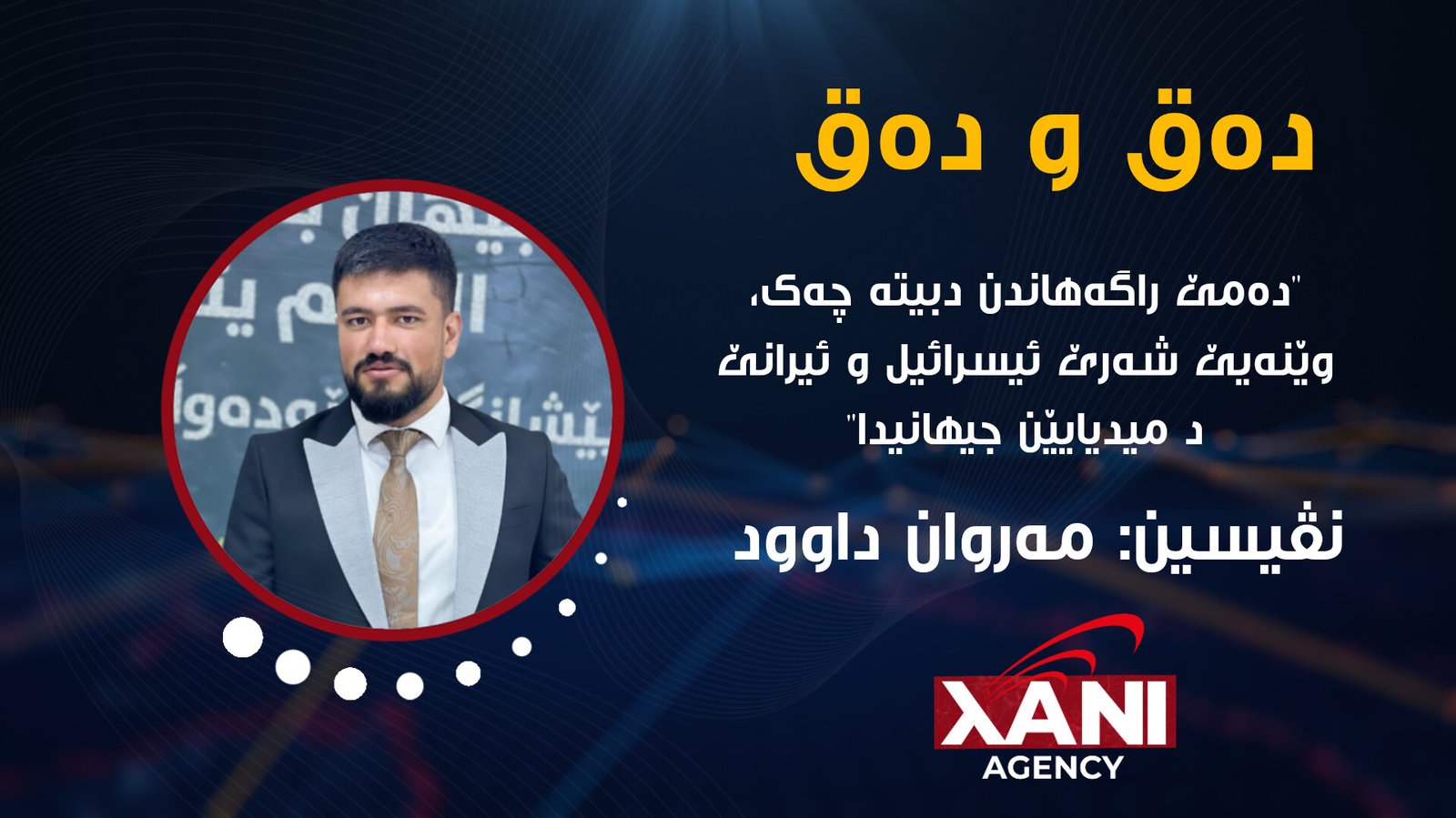 د ڤێدەرێ دیار دبێت راگەهاندن بتنێ ئامرازەک نینە ژ بۆ گەهاندنا زانیاران، بەلکو چەککی ب هێزا د جیهانا سیاسی و دەروونی دا، ئەڤ چەندا ژی د شەرێ دناڤبەرا ئیسرائیل و ئیرانێ دا یێ ڤێ داویی دیار بوو، چاوا راگەهاندنا جیهانی رۆلەکی سەرەکی دگێڕێت د گهورینا هزر و بیریێن رەئیا گشتی دا دەربارەی شەران، وان بڤێت دێ کێ تیرۆریست نیشان ددن و کێ ئاشتی خواز، دیسان کی سەرکەفتی و کی شکەستی !!!