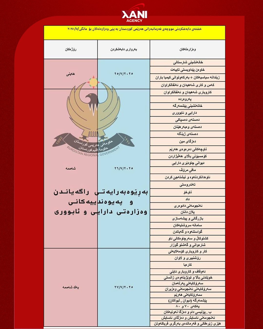 لیستەیا مووچەیێ هەیڤا پێنج یێ مووچەخۆر و فەرمانبەرێن هەرێما كوردستانێ